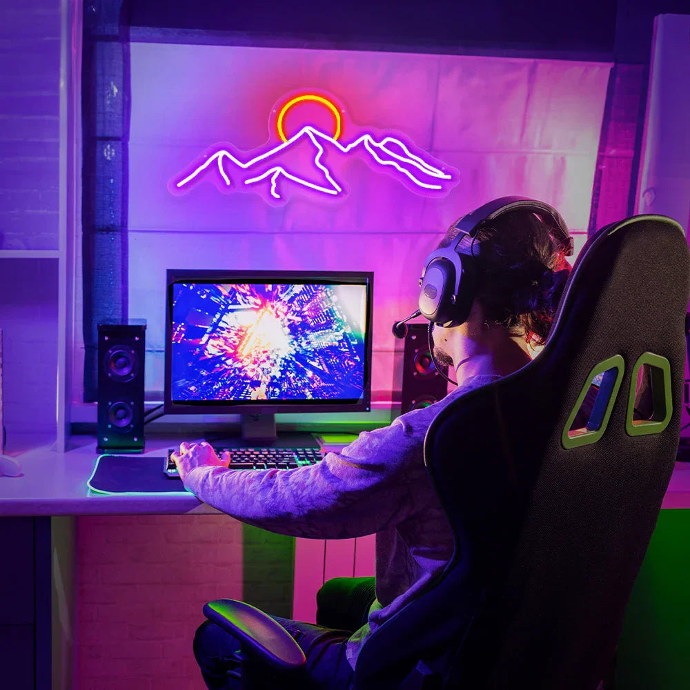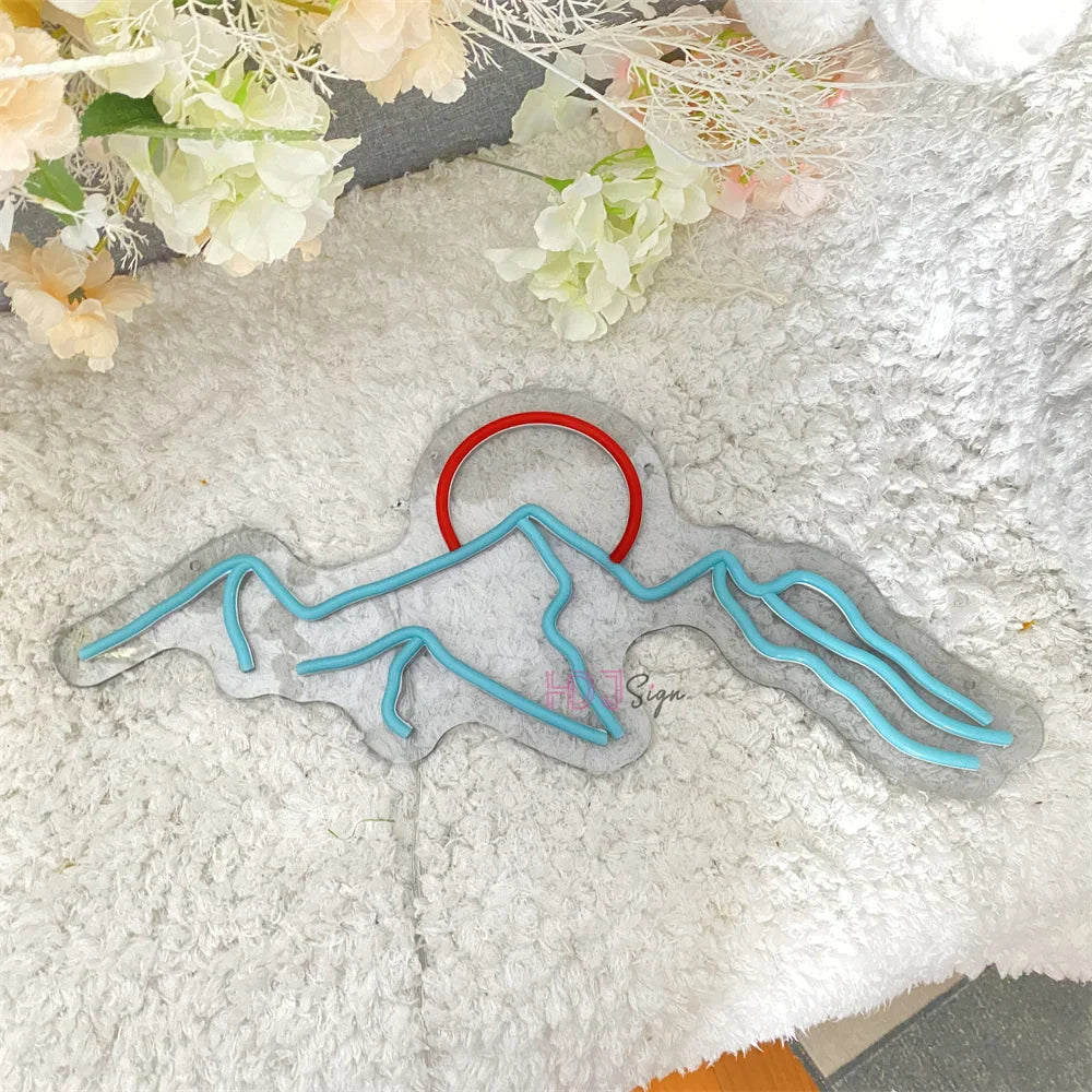 Neonowy znak LED góra i słońce dekoracja ścienna
